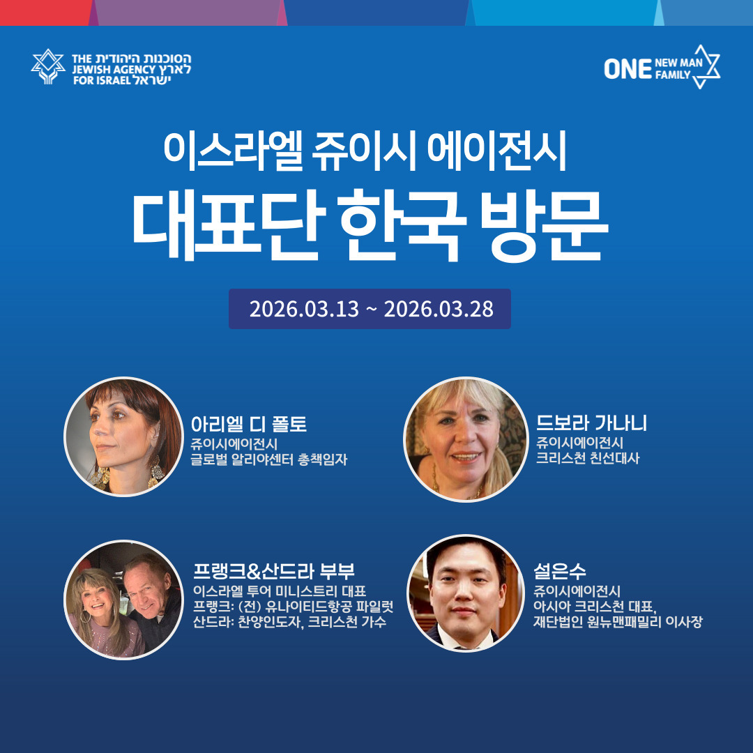 이스라엘 쥬이시 에이전시 대표단이 2026년 3월 13일까지 한국을 방문합니다!
