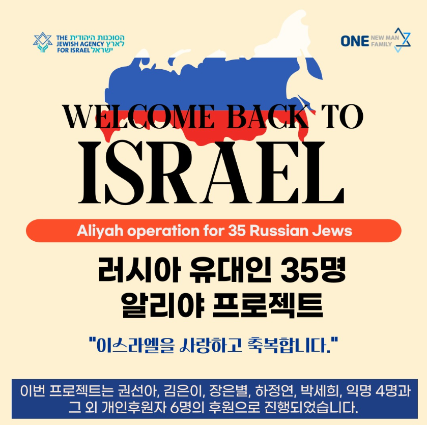 기도해주시고 함께 마음을 모아주신 모든 분들께 진심으로 감사드리며, 앞으로도 더 많은 알리야의 물결이 열릴 수 있도록 계속적인 기도와 관심 부탁드립니다.
